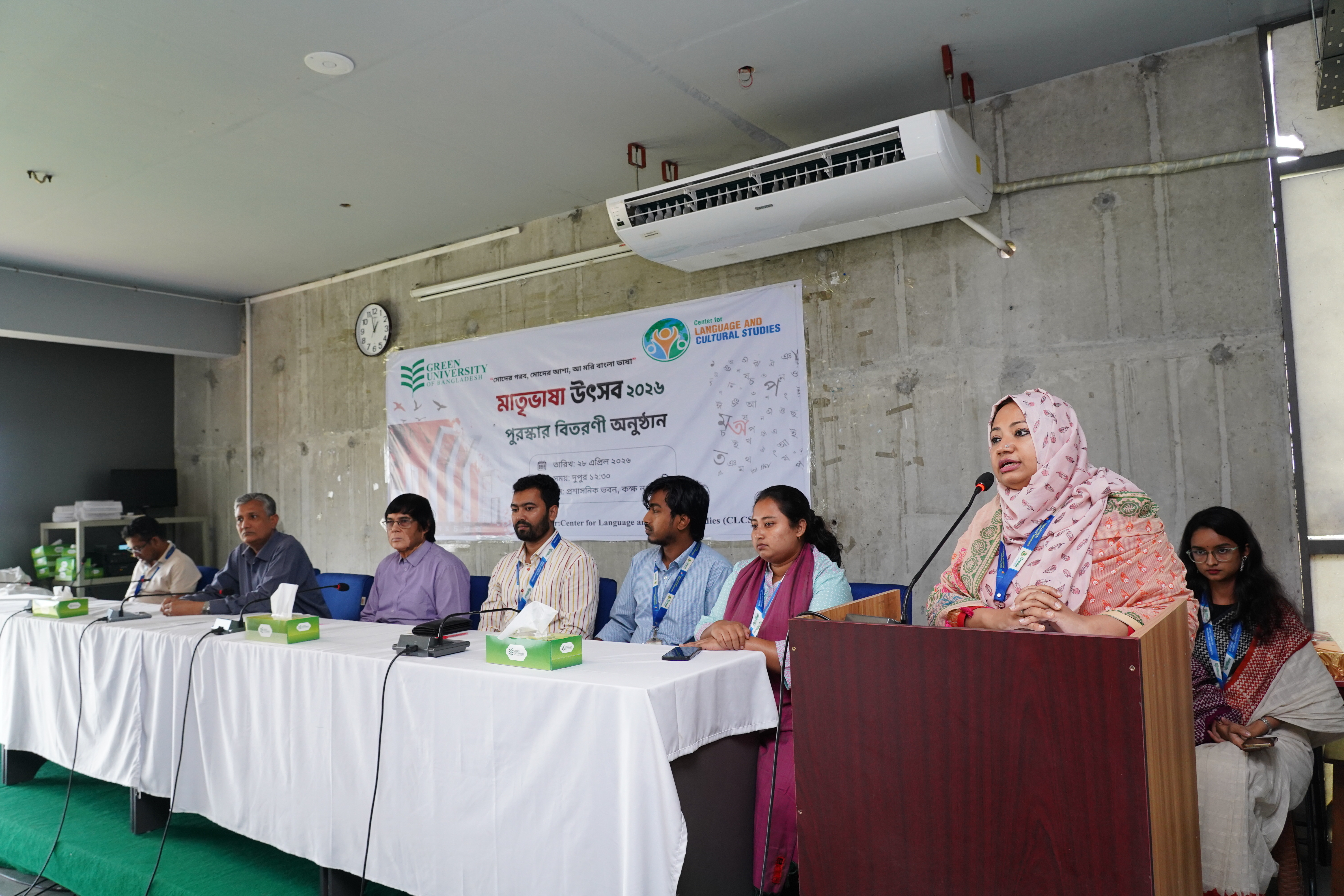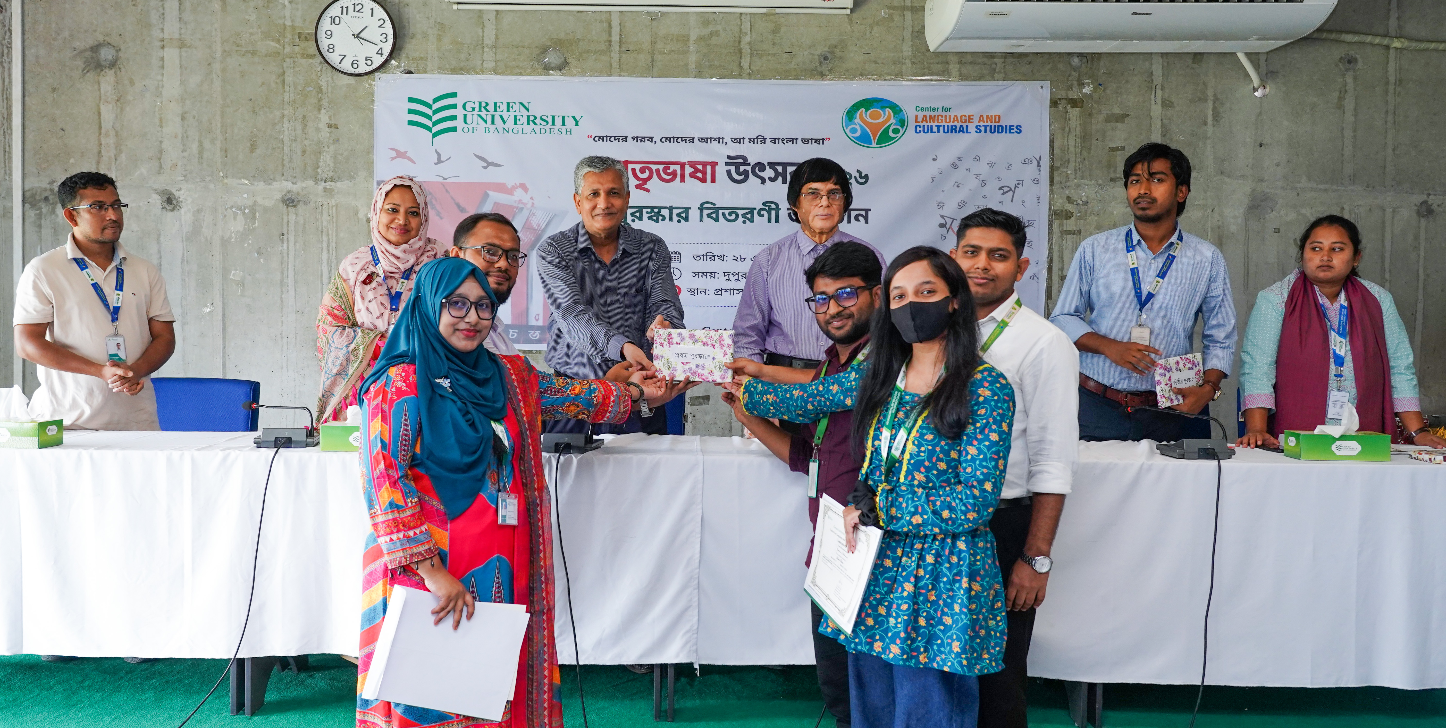 The Center for Language and Cultural Studies (CLCS) successfully organized the Certificate Distribution and Prize Giving Ceremony of Mother Language Fest 2026 on 28 April 2026 at Room 409, Green University of Bangladesh. The event was arranged to recognize and honor the participants for their dedicated efforts and enthusiastic involvement throughout the festival.